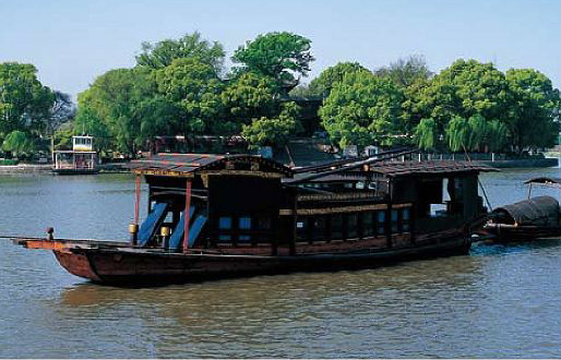 浙江嘉興南湖及游船(仿制),1921年7月,中國共產黨第一次全國代表大會在上海秘密召開,后因受到法租界巡捕的干擾而轉移到嘉興南湖的一艘游船上繼續進行。“一大”在南湖的續會上審議通過了中國共產黨第一個綱領和第一個決議,選舉產生了黨的第一屆中央局領導機構,莊嚴宣告中國共產黨的誕生。