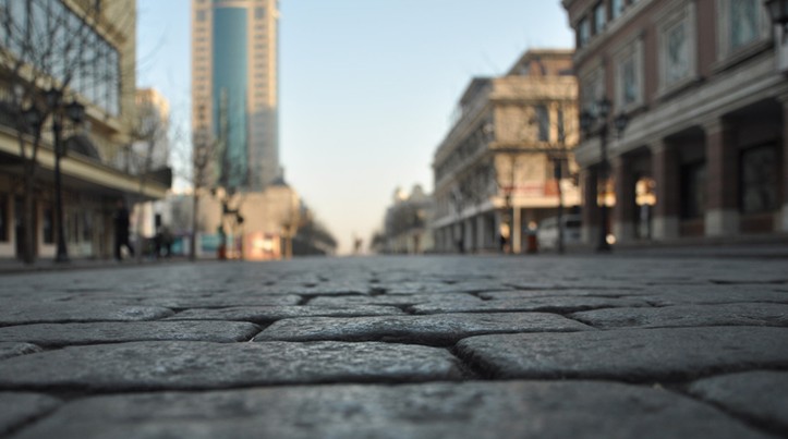 中央大街全長1450米,寬21.34米,其中馬路方石路寬10.8米。最具特色的就是整條街由方石鋪成。1924年5月,俄國工程師科姆特拉肖克設計并監(jiān)工,為“中國大街”鋪上了花崗巖石塊,寬度為10沙繩,沙繩是俄制度量單位:1沙繩等于2.134米。鋪路用的方石塊每塊長18厘米、寬10厘米,其形狀大小就像俄式的小面包一樣,石面呈渾圓型,精巧、密實、光亮、圓潤,在中外道路史上極為罕有。據(jù)說,當時的一塊方石價錢相當于一塊銀元。“中國大街”足有1公里長,粗略算下來,整條街大約鋪有方石87萬塊,真可謂是黃金鋪路。