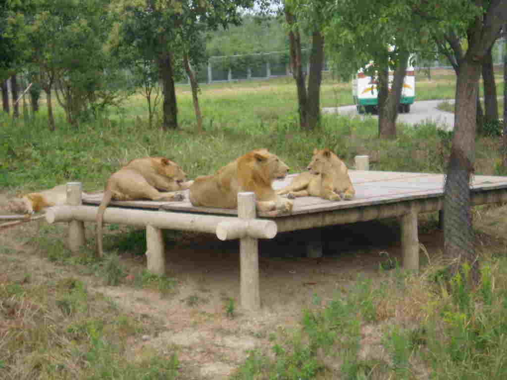 本園獅區現有30頭成年和14頭幼獅。展區內你看不到動物的籠舍,沒有都市里的喧囂與污染,也沒有水泥森林的壓迫感,只有滿目的青翠和回歸大自然的靜謐與清新。對每一位游客來說,乘坐游覽大巴,深入到食肉動物自由出沒的原野、叢林,是一種充滿著恐懼和刺激的歷程。進入非洲獅展區,非洲獅威武的形象即刻映入眼簾,頸部與肩部披著長長的黑褐色鬃毛的雄獅常常有讓人心驚膽跳的感覺。