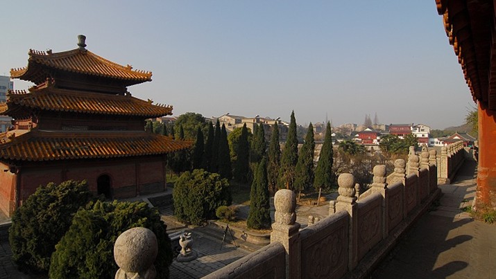 玄妙觀位于荊北路中段,其名體現了道家玄學思想的精髓。該觀始建于唐代,后毀于兵燹,現存建筑為明萬歷十二年(公元1584年)重建,主建筑玉皇閣三重飛檐,狀似塔形,屋頂有一青銅蓮花座,猶如盛開的金蓮,與屋頂閃爍的琉璃瓦融為一體,分外耀眼。觀后6米高臺之上建有三天門和玄武閣,均為重檐歇山頂,是為明清重建之佐證。版權所有山東聊城聊之旅國際旅行社有限公司,轉載必究!玉皇閣右側方立有一高大的石碑“九老仙都宮記”碑。此碑立于元順帝至正三年(公元1334年),是江漢平原所能見到的最早的碑刻,碑文記述當時的玄妙觀主持道人唐洞云被元順帝封為八仙后的之第九仙。碑文為元代著名學士歐陽元撰寫、元代書法大家危素手書,其史料及藝術值均彌足珍貴。
