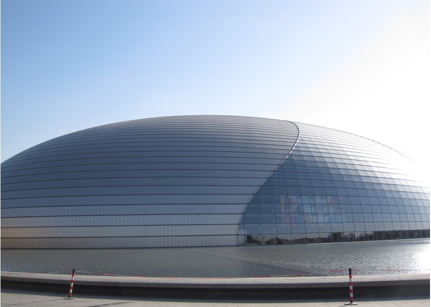 國家大劇院造型新穎、前衛,構思獨特,是傳統與現代、浪漫與現實的結合。