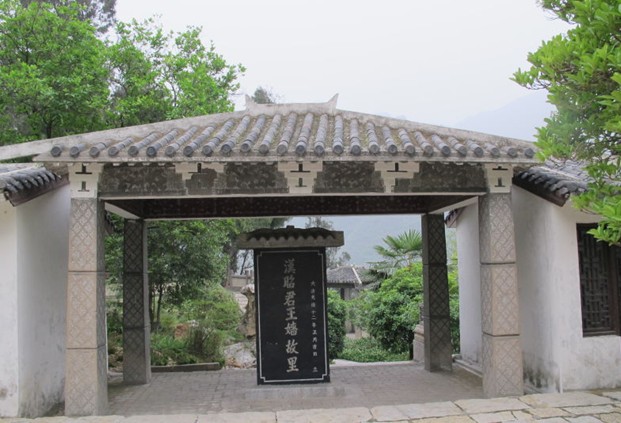 王昭君的故鄉(xiāng)興山縣寶坪村,又名昭君村,在西漢屬南郡秭歸縣。村里存有昭君宅、望月樓、楠木井、梳妝臺、玉字崖、明妃墩、琵琶橋等舊址遺跡,以及昭君陳列室、昭君亭、故里長廊、昭君像等。村里有一個壘石為基的屋臺,相傳是王昭君望月樓遺址。據(jù)說,王昭君出生在一個皓月當(dāng)空的夜晚,從小喜愛月亮,經(jīng)常登樓望月,村民于是稱此樓為望月樓。樓早毀,僅存屋石臺基?,F(xiàn)在遺址上置有古色古香的石桌、石凳和一具附近出土的漢代石獸。樓前有一口如菱花鏡似的水井,叫楠木井,因井中有一古楠木而得名。井旁青石碑上鐫刻有郭沫若夫人于立群所書“楠木井”三個隸字。相傳這是王昭君少年時代與女伴們挑水、洗濯的地方。穿過16級臺階,就到了梳妝臺,表示昭君在這里生長了16個年頭。