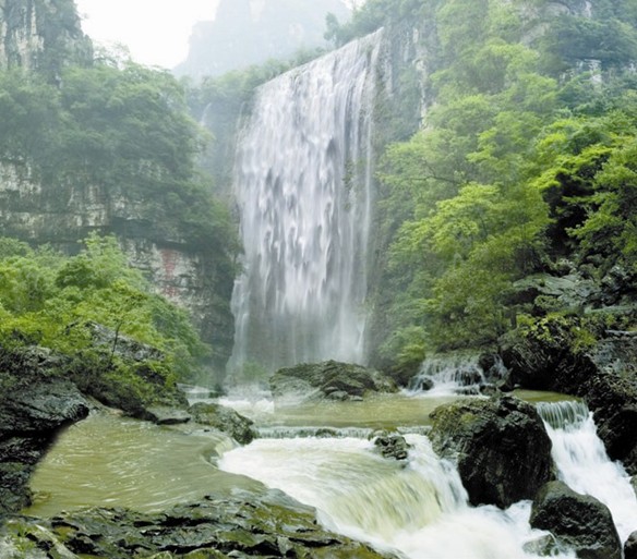 景區方圓數百里,淚淌河穿行其中,群峰峙立,重崖疊嶂,兩崖之間,僅四五米寬,仰頭望崖,僅見一線天光,古木森森,幽靜無比,素湍綠潭,回清倒影,“清泉石上走,鳥鳴山更幽。”飛鳥成群嬉戲清潭,常有高猿長啼、獾豬出沒,懸泉瀑布飛溯其間,蕩起數十米的水霧,隨日出日沒,瞬息萬變,時而七色彩虹,時而串串銀珠騰空。景區內,石筍林立,奇洞異石,珍貴藥材,古稀樹木,隨處可見。現在,白果樹瀑布風景區已發展成集食、住、行、游、購、娛于一體的旅游勝地。版權所有山東聊城聊之旅國際旅行社有限公司,轉載必究!氣宇軒昂的牌坊,富麗堂皇的別墅,依山傍水的吊腳樓,凌空飛架的索橋、瑰麗別致的亭臺軒閣,還有游泳池、釣魚臺,盡善盡美的人文景觀和“山光悅鳥性,漂影空人心”的如詩如畫的自然景觀,令游人神往。