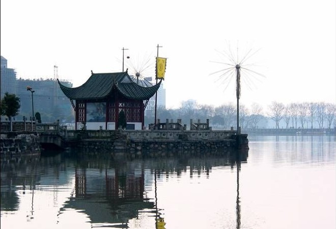 周瑜點(diǎn)將臺(tái)位于江西省九江市東北古桑落洲上(今安徽省安慶市宿松縣匯口鎮(zhèn)曹湖村),為一丈多高城樓,臺(tái)基長30米,寬16米,花崗石砌,建在傳說的點(diǎn)將臺(tái)遺址上面。現(xiàn)樓,明天順二年冬重修,臺(tái)上建筑磚木結(jié)構(gòu),版權(quán)所有山東聊城聊之旅國際旅行社有限公司,轉(zhuǎn)載必究!長18米,寬11米,面積200多平方米,分正廳與左右?guī)浚壳傲⒅拘ù┘埽干従椩萍y或花鳥紋,頂為碧翠的琉璃瓦,四角起翹,雕梁畫棟,頗顯壯觀。雖一度稱鐘鼓樓,一般仍叫周瑜點(diǎn)將臺(tái)。傳說是東吳大都督周公瑾檢閱水師和操練兵馬的地方,故臺(tái)前原有周瑜石馬槽,毀于1966年。據(jù)《三國志周瑜傳》記:“建安十一年,周瑜督討麻保二屯,還兵守備宮亭(指鄱陽湖)。又?jǐn)〗奶攸S祖,并生擒其部將鄧龍于柴桑(今九江縣)。”又據(jù)《志》記載:“漢建安十四年,孫權(quán)曾命周瑜向鄱陽湖教習(xí)水軍”,可見,原來確實(shí)有臺(tái)用以點(diǎn)將,亦可想像昔日臺(tái)上旌旗招展,前場刀光戟影,湖面戰(zhàn)船穿梭,壯烈激越的場面。如今登上城樓,憑欄放目,湖水波茫,漁帆點(diǎn)影,清風(fēng)徐來,令人陶醉。 九江市區(qū)甘棠湖中煙水亭前亦建有周瑜點(diǎn)將臺(tái)。