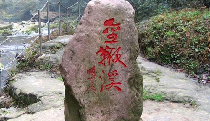 12、跳魚潭:穿過重歡樹所在密林,即到金鞭溪中跳魚潭,在紅色砂巖的溪床上,溪水沖成一條長(zhǎng)2 米,寬不盈尺的狹槽,稱為魚門,版權(quán)所有山東聊城聊之旅國(guó)際旅行社有限公司,轉(zhuǎn)載必究!春訊期,游魚迎水飛躍,常常跳落岸上。