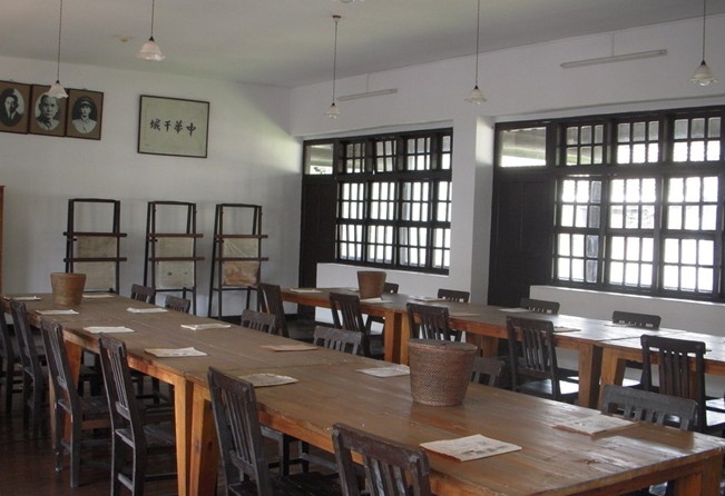 校長室和總理室設在樓上。校長室是蔣介石辦公和休息的地方,里面的擺設是按原貌恢復的。墻上貼著第一期學生的名錄,包括姓名、籍貫、年齡、評語等項。評語一欄由蔣校長親自填寫。每天中午,蔣校長都找幾位學生問話、談心,將了解到的情況,寫到評語上。他在陳賡的評語欄寫上這樣的評語:“此人外形文弱,但性格穩重,能刻苦耐勞、可以帶兵”。可見他能細致觀察學生的性格、能力和特點。