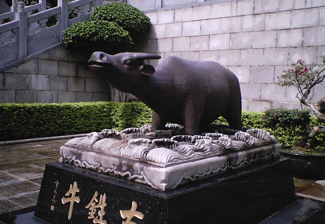 入口是一座聳立的大石牌坊,三門歇山頂建筑,高16米,氣勢恢宏磅礴,正中題“東粵菁華”,兩側分別書有“金聲”“玉振”,皆是國學大師饒宗頤先生的手跡。牌坊到正殿是三進石階,院內(nèi)花圃簇擁著石雕的麒麟、青獅、盤龍及鐵牛等吉祥物。