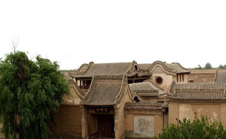 董府所在地,原是一片湖塘。湖底全部用煤炭墊起(1.5~2米厚)上面再鋪黃土。數(shù)百峰駱駝?dòng)纱鸥G堡馱炭,半年才把地基墊起。修建董府所用的木料來自甘南,沿黃河順?biāo)畔?。石料來自陜西,木匠大都來自四川。故其窗門雕花頗具南北特色,做工精細(xì)。鐵匠來自包頭,石匠多為陜西。