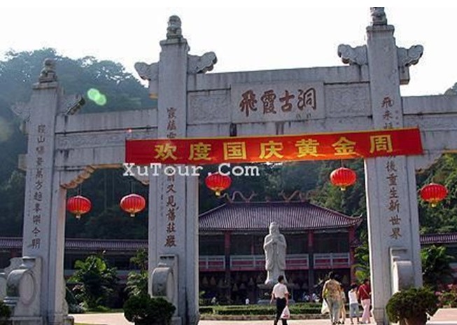 飛霞洞四面環(huán)山,以建筑雄偉聞名,只見殿宇順著山勢逐級疊建而上,高達七級,頗有布達拉宮的震撼氣勢和凌空欲飛的逼人幻覺。每當山雨過后,一陣陣紫霞之氣從山坳騰升到殿宇上空,飄飄緲緲,故謂飛霞。寺中供奉的神像形態(tài)生動、價值珍貴。它是全國為數(shù)不多、嶺南地區(qū)最大的“三教合一”的宗教場所。古洞內(nèi)奉儒、釋、道三教祖師及諸仙佛,建筑面積達2萬多平方米。