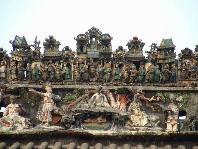 佛山有“順德宗祠南海廟”之說。順德宗祠文化相當深厚,全盛時期境內就有1萬多間宗祠,而順德陳家祠無論在建筑或規格上,都屬翹楚之作。其最大的亮點,就在宗祠前座第一進的正脊上。