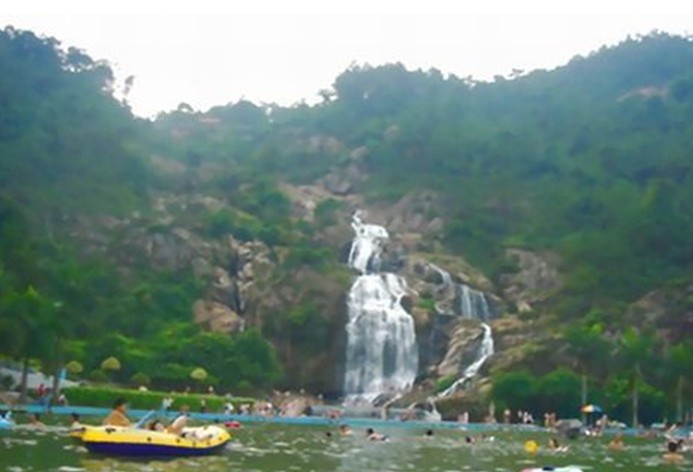 西山瀑布位于水庫的東北角。瀑布從懸崖上傾瀉而下。落差有100多米,寬30多米,是廣州市最大的天然瀑布。崖上有座龍王廟,所以有人稱這瀑布是“天龍垂涎”。1988年芙蓉度假區首期工程便是在這里建成。瀑布之下,利用天然山水,加以人工改造, 成為廣州市最大的天然游泳場。經過多年開發,水庫周邊建成了許多錯落別致、風格多樣的度假屋村,成為避暑休假水上游樂的好地方。