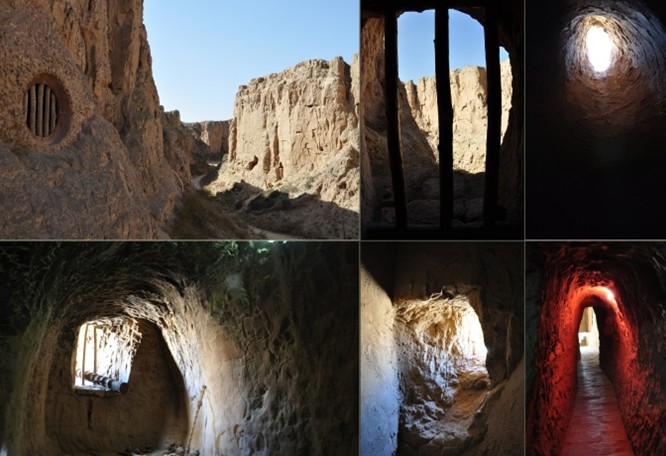 藏兵洞蜿蜒曲折于懸壁之中,上下相通,左右相連,洞中分叉頗多,左盤右旋,久久不見盡頭,確如迷宮,一般對洞內(nèi)情況不熟的,很難走出去。洞中除洞道外,左右辟有土屋,可以住人,大約是專供領(lǐng)兵長官住的。洞內(nèi)還設(shè)有糧食儲藏室,有水井、灶房等,只要儲藏夠一定的食物,在相應(yīng)的一段時間內(nèi),洞內(nèi)所藏將土不出洞,照樣可以生存。因藏兵洞高出溝底10多米,可以是不怕水淹的。多年來,既便發(fā)山洪,藏兵洞都不曾為水淹過。對于古人的智慧,我們真是嘆為觀止。