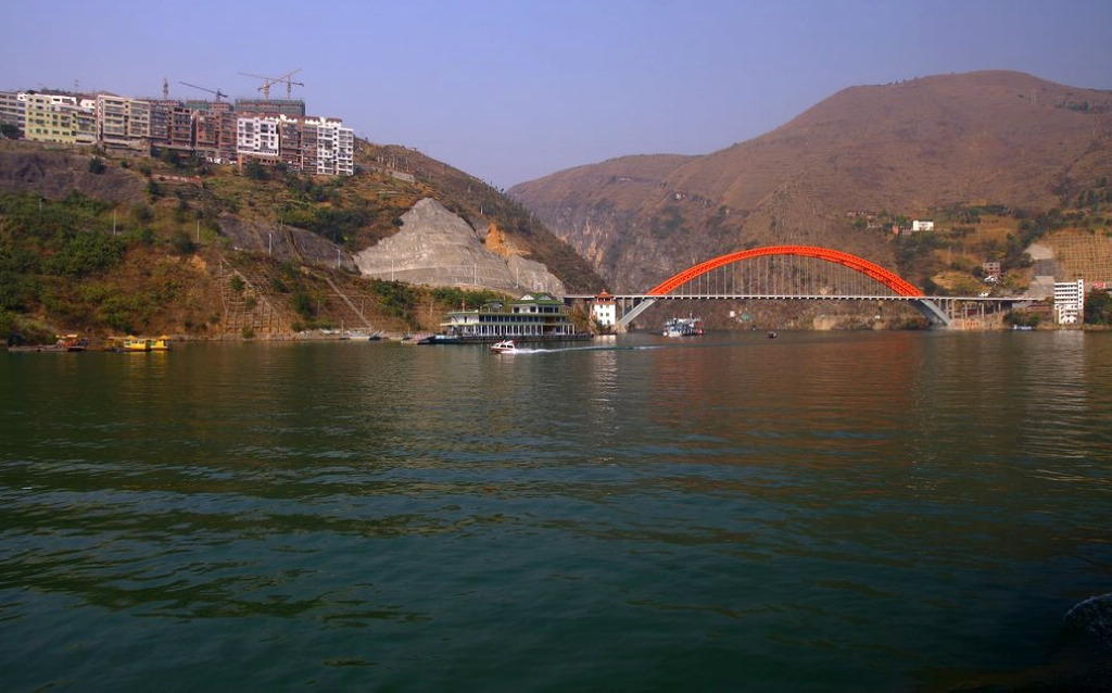 小三峽是針對長江的大三峽而言的,它位于重慶巫山縣境內(nèi)。長江在進(jìn)入巫峽時,有一條名為大寧河的支流流入,形成一個比較寬敞的江面。巫山縣城就處在大寧河流入長江的入口處,是一座搬遷后新建的小城。從下面望去,不大的城區(qū)依山傍江,錯落有致。導(dǎo)游介紹說,新城是廣東援建的,主要街道就命名為廣州街。