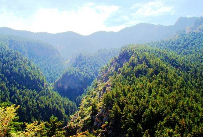 蘇峪口國家森林公園,山體巍峨,森林茂密,自然風光秀麗,人文景觀獨特。近萬公頃的范圍內,油松、杜松、云杉等天然林木一望無際;櫻桃、丁香、蒙古扁桃等珍稀灌木遍布山谷溝壑。尤其是當您踏入國家森林公園的深處,登上青松嶺的峰頂,人處在蒼茫林海之中,低頭看百丈懸崖,放眼望郁郁蔥蔥。古松立于峭壁之間,殘雪留存高山之上,松濤陣陣,云霧蒙蒙,宏偉險峻的景觀給您一種回歸大自然、陶醉大自然的美好心境。