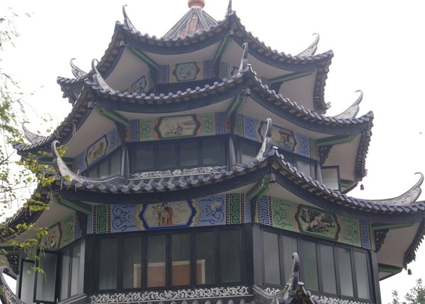 行到回廊深處,便是遠(yuǎn)近聞名的“玲瓏水榭”了。它環(huán)水而立,是園內(nèi)第四所建筑俗稱“八角亭”。水榭呈八角形,八面全是窗戶,結(jié)構(gòu)高雅。這樣一來,既能八面通風(fēng),又可以八面觀景。對于八角亭的八景,有一首五律詩概括得很好,那詩就是:“丹桂迎旭日,楊柳樓臺青;臘梅花開盛,石林咫尺形;虹橋清輝映,臥瓢聽琴聲;果壇蘭幽徑,孔雀盡開屏。中國園林建筑藝術(shù)風(fēng)格獨(dú)特,強(qiáng)調(diào)詩情畫意。“玲瓏水榭”之所以遠(yuǎn)近傳名,就因?yàn)樗扔性娗椋钟挟嬕狻?/p>