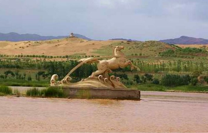 中衛市城區有一條最古老的引水渠叫“美利渠”,它的引水原理是在河心筑堤引水,因此被稱為寧夏的“都江堰”。河水撞擊在10里引水長堤上,但見浪花飛濺,恰似白云翻飛,遠遠望去,宛如一匹白馬拖著長長的韁繩馳騁在黃河之中,這便是中衛古八景之一的“白馬拉韁”。