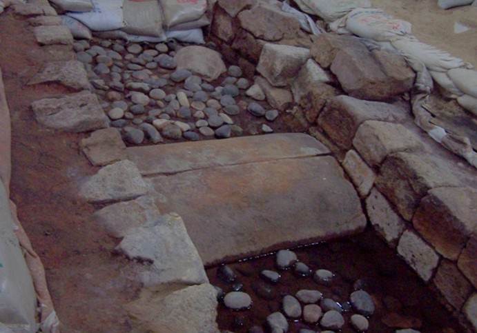 發掘工作從8月1日開始,至11月結束,發掘面積450平方米,在距地表深約4.5米處清理出一座大型石構水池的西南一角。水池呈仰斗狀,池壁用灰白色的砂巖石板呈密縫冰裂紋鋪砌。池底平正,用碎石鋪砌。在已發掘探方的東北角處,還有一大型的疊石柱向西南傾倒,由于太靠近一幢5層高的樓房,無法擴方發掘究明。水池當中還散落有大量的八棱石柱、石欄桿、石門楣、“萬歲”瓦當和板瓦、筒瓦等建筑材料和構件,可知水池當中原來是有一組建筑的。后經鉆探得知,版權所有山東聊城聊之旅國際旅行社有限公司,轉載必究!水池的面積約4000平方米,目前揭露的僅是其西南約400平方米的一角。
