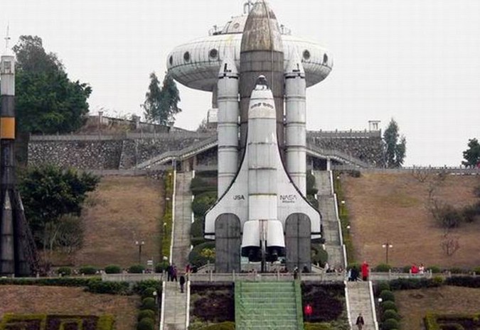 天河航天奇觀位于廣州天河區東圃鎮,是由當地農民自行集資興建的,首期占地20多公頃,總投資2.5億元。