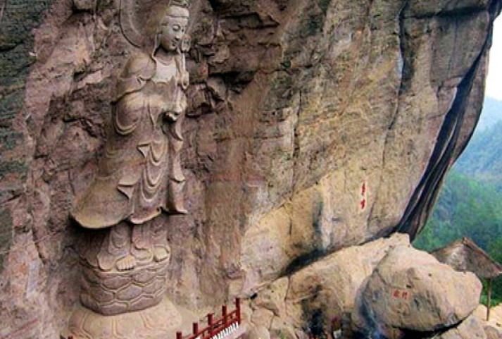 虎嘯巖位于二曲溪南,怪石崔嵬,流水迂回,是一個獨具泉石天趣的佳境。“虎溪靈洞”4個大字高勒于巖上。蟠踞在一線天北面,相傳曾有仙人騎虎吼嘯其上,故名。“虎嘯”之聲,來自巖上的一個巨洞,山風(fēng)穿過洞口,便發(fā)出怒吼,聲傳空谷,震撼群山。主要景點有天成禪院和虎嘯八景。