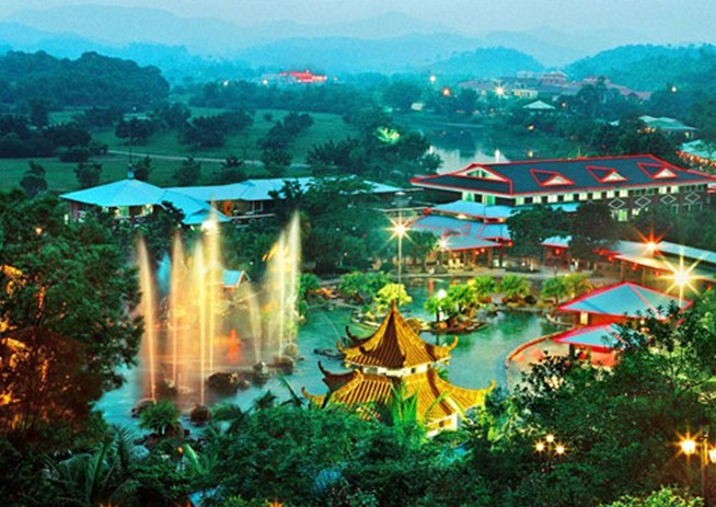 恩平帝都溫泉位于廣東省恩平市良西鎮,距廣州市160多公里。珠三角綠道網三號線西起點從這里開始。二百多萬平方米原生態自然園區,龍脈環抱,鐘靈毓秀,王者氣勢。十五萬平方米溫泉園林水區,山林綠野,景色優美,空氣清新,運用中國傳統文化以及地方文化進行設計建造的大、中、小溫泉浴池80多個,溫內有目前世界最大的溫泉瀑布群、溫泉舞臺和溫泉浴池,也是目前世界最大的山水文化溫泉。其特點是在世界最大的溫泉園林中增進健康;在山林綠野,返樸歸真的自然環境中怡養健康;在傳統和現代相結合的養生文化中感悟健康;在療效神奇的溫泉滑水中得到健康;在陰陽平衡生態中恢復體能、享受健康。