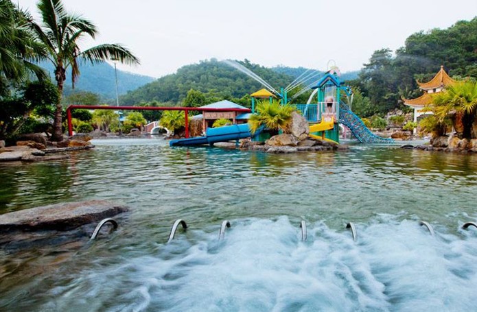 在中國第一個溫泉之鄉——恩平市,有一座被環嶺群峰擁抱著的溫泉山,山下的三十多處自噴溫泉,日流量為6000立方米,其溫泉水溫高達73℃,水質晶瑩幼滑,并含有偏硅酸、氟、氫、硫等多種有益于人體健康的元素,是世界少有的滑溫泉,這就是帝都溫泉。