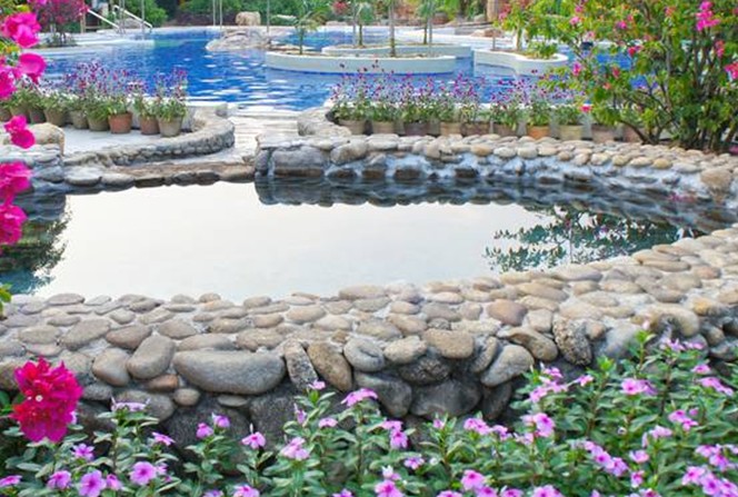 金山溫泉最引人入勝之處在于每天將2800多立方米、高達85℃的溫泉水從室內引出到室外,開辟了22個大小不一的泳池,總面積達到8000平方米,共建有22個大小不一的溫泉泳池和28個日式溫泉池。日式溫泉池按溫度分為高溫池、常溫池、冷水池;按功能分為理療池、娛樂池、通用池。在1號池中,水溫達70-80℃。