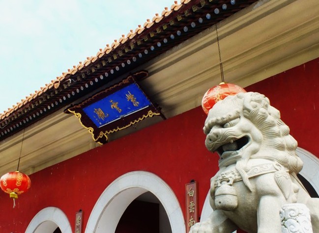 遠望這座仿古建筑群,流光溢彩,氣勢非凡。門前有6000多平方米的停車場,室外的地面砌花崗巖石,綠樹紅花點綴其間。版權所有山東聊城聊之旅國際旅行社有限公司,轉載必究!進入山門后,兩邊分別是鐘樓和鼓樓,中間有一座漢白玉石雕砌的會仙橋。各建筑物的梁柱和走廊間繪制了許多花鳥、山水、人物圖畫,體現了濃厚的文化品味。宮觀內各殿堂安坐的神像有靈官護法、玉皇大帝、三清道祖、呂洞賓仙師、黃大仙、斗姆、六十太歲、關圣帝君、北帝、李涵虛祖師、觀音大士、天后、龍母等九十多尊。神像雕塑,道骨清相,神態逼真,形象慈祥、威嚴、端莊。