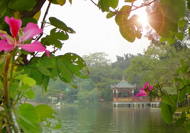 這是1986年建成開放的新景點。它采用中國庭園設計手法,庭廊相接,曲折回環。館中陳列著各種新奇花卉和盆景。這是一個小型花苑,如果對盆景有興趣的游客,在這里可以欣賞到很多各具特色的盆景,在“縮景為寸”的天地中領略到各處大自然的美景。宮苑里一年四季鮮花盛開,有不少是熱帶或寒帶才能生長開花的品種,所以這里又是一個鮮花鑒賞的新天地。這座宮苑開放以來,每天都接待不少海內外旅游團體和個人,他們都稱贊說:“這是南國獨有的一條風景線”。