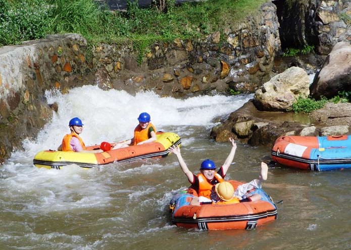 立于灘頭,沿江兩岸有大瑤山隧道、十里畫廊、龜山、蛙石等景點(diǎn),有十多個(gè)回旋處。在漂流過程中,可盡享原始森林峽谷漂流之刺激,更可欣賞融山之雄、水之秀、林之幽、花之美、石之奇、瀑之壯、鳥之鳴、魚之樂于一身的原始森林山谷風(fēng)光。