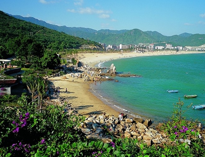 大梅沙海濱公園是位于神奇秀麗的南海之濱、風(fēng)光旖旎的大鵬灣畔、深圳特區(qū)的東部。這里三面青山相擁,中間開闊開緩,一面臨海,1800米的沙灘就鑲嵌在這青山碧海之間。