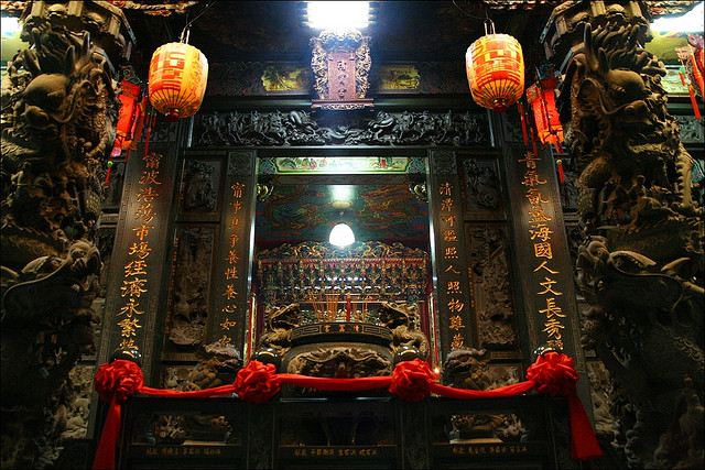 再內(nèi)為大雄寶殿,供奉釋迦牟尼佛,該殿占地頗廣,因而三十燭光的燈泡更顯出洞內(nèi)的幽暗,但暗并不妨礙行者的修行,正如殿上的喝語(yǔ):仙自燦爛展臺(tái)稱,洞常幽暗境常清,一顆明星在暗夜中更顯出其明亮,而佛菩薩更能在紛擾熙攘的環(huán)境中求得一片凈土,因而所處雖紛亂、晦暗,卻能保有一顆澄明、平常的心。寶殿右側(cè)為地藏殿,供奉地藏王菩薩,為生靈開(kāi)覺(jué)路;左側(cè),供奉民間傳說(shuō)的八仙,更為仙洞巖加上神話色彩。由于石洞天成,且為海蝕,經(jīng)過(guò)長(zhǎng)時(shí)間的侵蝕后,洞內(nèi)時(shí)而有水滴穿流而下;高搬觸石壁,腐蝕的壁巖屑隨著手指的觸摸而沾滿,心頭一驚,心想,這風(fēng)化的石壁不知經(jīng)過(guò)了多久時(shí)間的摧殘才形成?若再一直風(fēng)化下去,仙洞巖不知能再在宇宙間存在多少時(shí)日?叉百多少有緣人能及時(shí)一會(huì)?