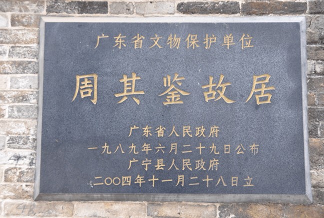 周其鑒烈士故居,在東鄉鎮紅星管理區新樓村,磚木結構建筑,三間兩廊民房,寬14.1米;深11.6米,面積為163平方米。農民運動期間,其故居是進行革命活動的主要故居附近的“澹園”書室是彭湃、周其鑒于民國13年(1924)11月主持中共廣寧縣支部首批黨員入黨儀式的地方。 地點之一,彭湃、周其鑒等主要領導人經常在此研究工作。