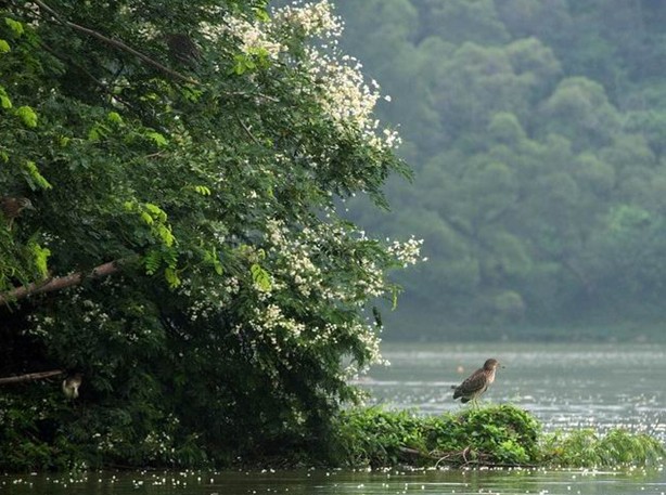 星湖濕地公園內(nèi)清雅絕俗、灌木滿島、水中羽杉、灘涂蘆葦、濕地水禽、鷺鳥飛翔、金沙碧水、哇聲鳥鳴、景觀奇絕,充滿自然、古樸、野趣、原生態(tài),猶如人間仙境。景區(qū)內(nèi)常見植物種類約有100科屬,其中巖山適生植被形成獨特的峭壁森林,古榕盤根附石,有溫潤之氣,蒼翠欲滴。土崗山地則以人工風景林為主,另有部分果林。主要植物有鳳凰木、木麻黃、臺灣相思、桉樹、馬尾松、雞蛋花、白蘭花、細葉榕、大葉榕、海紅豆、銀合歡、落羽杉、芒果、龍眼、荔枝和霸王花等,景區(qū)陸地綠化覆蓋率約為85%。濕地公園現(xiàn)有古樹名木57株,主要樹種為海紅豆、榕樹和雞蛋花等。其中300年以上古樹7株,100-300年古樹46株。巖石和峭壁上多百年以上古樹,蒼勁滋生,四季常綠,是罕見的景觀。濕地公園湖湖相連,植被良好,空氣清新,是國際侯鳥遷徙的重要停歇地、繁殖地和越冬地。七星巖的巖山、土崗適合于鳥類棲息,主要有雉、斑鳩、斑鴿、鵪鶉、鵲、相思和麻雀等鳥類約180余種。湖面候鳥種類較多,主要有白鶴、游雞等。其中“濕地之神”中國著名文化鳥——丹頂鶴有45只,為中國南方數(shù)量之冠。還有亭亭玉立的宮廷美女——火烈鳥有150只。東方白鸛、白枕鶴、蓑羽鶴、灰冠鶴、白鷺、夜鷺等,種類多不勝數(shù)。星湖適合各類淡水魚種的生長,主要有鯇魚、鰱魚、鯉魚、鯪魚等。豐富的濕地風光及人與自然、人與動物和諧相處的天然佳景,構成了一幅幅如詩如畫的山水圖畫。