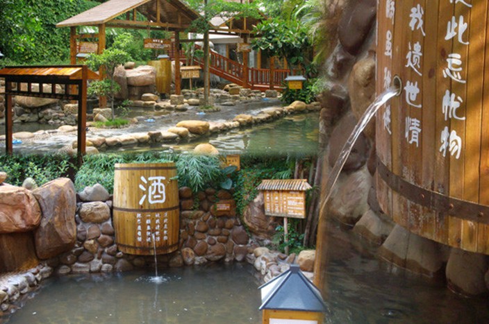 泉眼溫泉至今已有千年歷史,溫泉水質(zhì)經(jīng)中山大學(xué)基礎(chǔ)醫(yī)學(xué)院檢測(cè),富含鈉,鉀,鈣,鐵,鋅等30多種有益人體纖體,美膚,活血、保健等功效的微量元素,是難以求得的優(yōu)質(zhì)巖層溫泉,被專(zhuān)家稱(chēng)為“嶺南名湯”。溫泉設(shè)計(jì)融匯中外名泉優(yōu)點(diǎn),巧妙將現(xiàn)代與自然結(jié)合,溫泉空間人泉合一,泉區(qū)布局幽閑浪漫,有“浪漫溫泉”之美稱(chēng)。