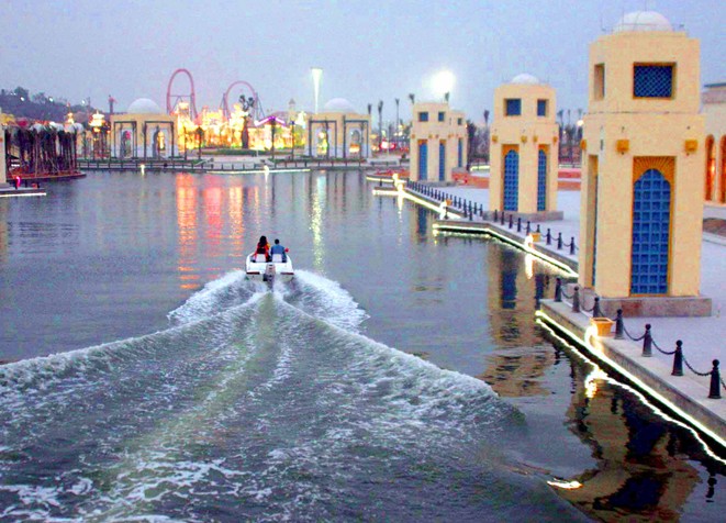 度假城里的神秘島主題樂園有目前世界上最新的傾斜塔、瘋狂松鼠、激流勇進、彈射式過山車等大型現代游樂設施,讓游客在互動中感受極限快樂。而依湖而建的漁人碼頭,設有大型水幕電影,40多艘游艇可在全園貫通的水面游弋,到達園區內任何一個景點。美食廣場、專賣店、酒吧、西餐廳在這里星羅棋布,充滿西方嘉年華氛圍。另外,度假城還擁有1200多個座位的高科技劇院,360度旋轉座椅使觀眾能盡情欣賞每晚上演的《海邊的夢》主題晚會。度假城中兩座摩洛哥皇宮風格的五星級酒店,由度假功能主樓、會議功能主樓、蜜月套房和溫泉別墅1000間自然客房組成,充滿濃郁的異國風情。
