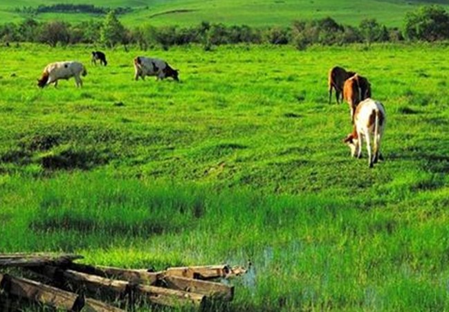 杜爾伯特靠山草原位于縣城東南20公里處。總面積1056萬平方米,為原始草場,屬草甸草原類型,以中旱生的多年生草本植物為建群種,叢生和根莖性禾本科牧草占優(yōu)勢。土壤主要為草甸土和沙土,草層高度平均為0.45米,植被覆蓋度為95%。禾本科牧草有羊草、野古草、隱子草、貝加爾針茅和洽草;豆科有興安胡枝子、細(xì)葉胡枝子、五脈山黧豆、野苜、山野豌豆和黃芪等。生長期為3月一10月。