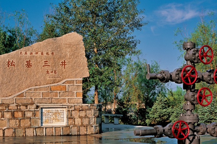 1958年9月,松遼石油勘探局最早提出在肇州縣“大同鎮電法隆起”上安置“松基三井”的井位。1959年9月26日下午4時,松基三井噴出了工業油流,從此中國石油工業歷史上掀開了新的一頁?,F在的松基三井紀念碑位于第五采油廠,是為紀念大慶油田發現30周年,由中國石油天然氣總公司于1989年9月26日重新建成的。石油工業老領導、原中顧委常委康世恩同志題寫碑文:“大慶油田發現井——松基三井”。
