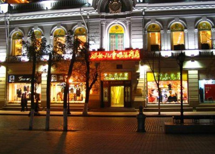 原為猶太人薩姆索諾維奇兄弟商會。建于20世紀初期,1915年轉賣給秋林公司,成為秋林洋行道里分行。磚混結構,新藝術運動建筑風格。正面入口原有雨棚和二層弧形窗,是典型的新藝術運動表現手法。強調裝飾、構圖、質感。建筑主體三層,各層間以腰線分割,自下而上窗口逐漸縮小,建筑造型體現了精致、柔和的風格。哈爾濱Ⅰ類保護建筑。