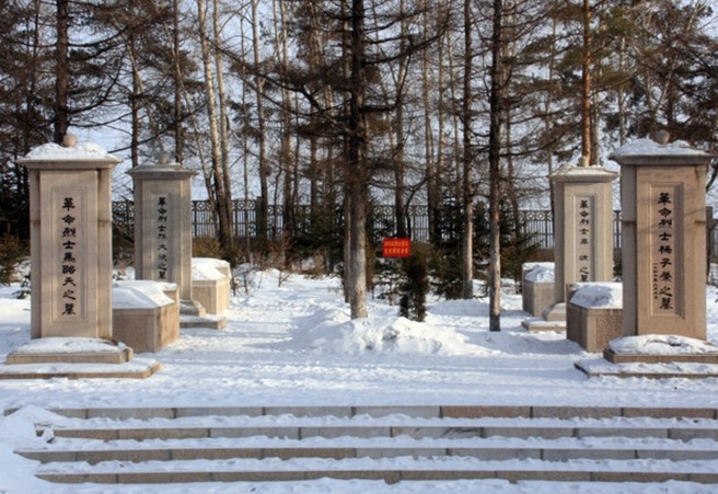 楊子榮烈士陵園位于海林東帳篷山東側(cè)東山。沿著子榮街一直往前走即可進(jìn)入陵園。陵園占地面積7萬平方米。陵園青松滿布。1978年擴(kuò)建420平方米的"楊子榮烈士紀(jì)念館",陳列烈士遺物和事跡。1983年建160平方米的博物館,陳列海林市出土的文物及物產(chǎn)標(biāo)本。1985年建成公園,內(nèi)設(shè)有動(dòng)物、花卉等,游人四季不斷。繼續(xù)往前走,登上一串長長的臺階,就是楊子榮等烈士之墓。