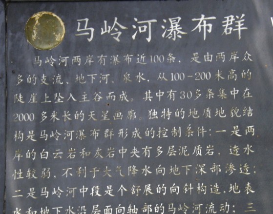 中國最大瀑布群,這里石峰成林,壯闊雄偉;峽谷成河,奇險(xiǎn)幽深。它是國家最近公布的重點(diǎn)風(fēng)景名勝區(qū)之一。馬嶺河發(fā)源于烏蒙山脈,流入黔、桂交界的南盤江,長達(dá)100多公里。它的地貌結(jié)構(gòu)與一般峽谷不同,實(shí)際上是一條地縫。有人說:這是地球最美麗的傷疤。沿著石階下坡,奇險(xiǎn)幽深的峽谷就逶迤展現(xiàn)在眼前。走在這條深200-400米的地縫底部,只見尖峭的峰巒赫然屏列,瀑布異彩紛呈且氣勢磅礴,有一種幽深的神秘氣氛彌漫在山谷間。
