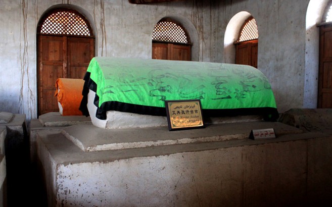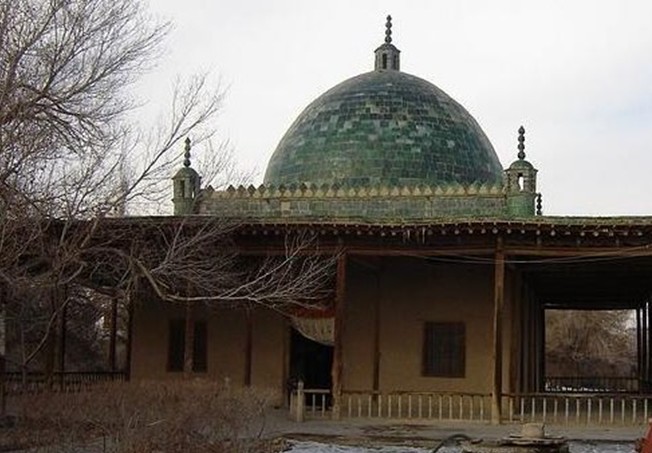 位于新疆哈密市西郊的蓋斯墓又稱“圣人墓”、“綠拱背”。相傳,唐貞觀年間,應唐太宗李世民邀請,伊斯蘭教先知穆罕默德派弟子蓋斯、吾外斯,萬嘎斯三人來中國傳教。萬嘎斯病逝廣州,蓋斯和吾外斯到達長安,受到唐太宗的歡迎。回國途中,吾外斯病逝于河西之回回堡,蓋斯則于唐貞觀九年(公元635年)歿于星星峽,被草草掩埋。后來,哈密回王派人在星星峽為其修建一座拱背。《新疆圖志》記載:“星星峽麓有回紇墓。……。土人為醵金建屋,覆其壟,禱輒響應,匾額充棟,亦有施錦幢墓上者,恒積尺許”。后來拱背被拆毀,民國28年(1939年)時由哈密伊斯蘭教徒發起,修建了蓋斯墓,將蓋斯遺骸由星星峽遷葬于此。蓋斯墓為伊斯蘭式建筑,高約10米,下部方形,上部為拱式圓頂,頂部用綠色琉璃瓦鑲砌,四周有廊檐,這座陵墓規模不大,版權所有山東聊城聊之旅國際旅行社有限公司,轉載必究!但因安葬“圣人”而聞名,許多不能去麥加朝圣的伊斯蘭教徒,紛紛來這里朝拜。朝拜者所獻錦幛掛滿墓內墻壁,疊蓋在“圣人”墳上。相傳蓋斯墓遺骸長約六尺余,胸部肋骨之間皮肉相連,頦下的胡須猶存。蓋斯墓東西長22米,南北寬12米,通高15米,基座方形,圓形拱頂,遍覆綠色琉璃磚,四周為木柱支撐的回廊,四角飛檐,是一座融阿拉伯與漢族建筑風格于一體的建筑物。墓地四周筑圍墻,墻內栽植各種樹木花草,環境尤為典雅幽靜。蓋斯墓有世界上保存不多的伊斯蘭教先賢的遺骨,是伊斯蘭信徒朝的重要圣地之一。