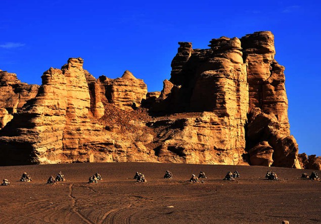 魔鬼城位于哈密市五堡鄉以南,距五堡鄉20Km,距哈密市約100Km,由于它神秘莫測,不熟悉地形的人若遇風暴,有迷失方向的危險,哈密雅丹地貌東起煙墩外的駱駝峰,經雅滿蘇鐵礦,大南湖煤礦,到五堡沙爾湖十三間房等長約400公里,寬約5-10公里,在哈密屬于特殊的地理環境,它是經過漫長的風蝕自然而形成的。在魔鬼城可以看到那些酷似城堡、殿堂、佛塔、碑、人物、禽獸形態各異的景觀、令人眼花繚亂的陡壁懸崖、以及混跡巖礫中五光十色的瑪瑙、隨處可見的硅化木、枝葉清新的植物化石,偶爾可獲得象恐龍蛋化石的小圓石頭,海生的魚類化石、鳥類化石,當夜幕降臨時有時會聽到鬼哭狼嚎令人發指的嘶叫,因此才被人們稱之為“魔鬼城”。 版權所有山東聊城聊之旅國際旅行社有限公司,轉載必究!其實這里還真正存在著古城堡建筑、古民房遺址―艾斯克霞爾古城堡:離地面約六米的風蝕臺上的長方形的土夯建筑有高約五米,前面有門有窗的居住地,這就是人類活動之地、是古絲路的驛站或是哈密王朝的西南前哨,據當地人推測,此地西面的沙爾湖(由流沙通向羅布泊)干涸之前,這里也有村莊人家,當水源游移(地殼變化)沙爾湖消失后,林木飛鳥在風沙中,部分變為化石,而此地居住的人只得背井離鄉,連先祖的遺骨也移走了、至今僅有遺址。哈密魔鬼城已是國家AAA級景區。