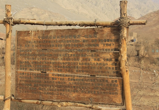 是位于大峽谷南出口溝谷中的一個古老寧靜的維吾爾族村落,有著1700多年的歷史,是迄今新疆現存的最古老的維吾爾族村落。它分布在綠塔聳立的清真大寺四周,約有二百余戶人家。這個村莊,完整地保留了古老的維吾爾族傳統和民俗風情。人們常常日出而息、日落而作,使用古老的維吾爾語交際,穿著最具民族特色的服飾,走親訪友依然是古典的驢車代步。 在這里生活的老人、青年、兒童的臉上,始終洋溢著平靜、自足、幸福的神情,給人以純樸、悠閑、與世無爭的美好印象。在古老的村落中,居民們繼承了兩千多年來用黃粘土建造房屋的傳統習慣。一些建筑還遺留著佛教文化和伊斯蘭教文化交相融合的印記。房屋建筑均是以黃粘土制坯建成的窯房,有大有小,有高有矮;有一層的,也有兩層以上的;有獨立成房的,也有沿山勢連成一片的。其特點是經濟實惠、冬暖夏涼。