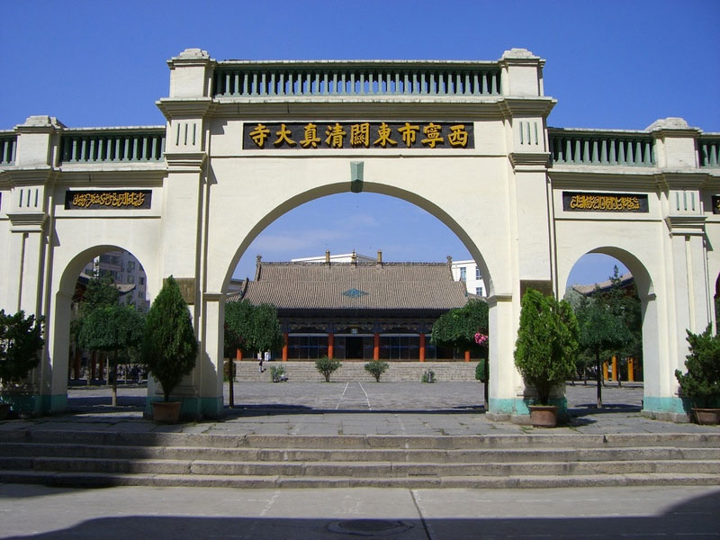 清真大寺是西寧古城著名的建筑,位于西寧東關大街路南一側。寺院占地面積1.194萬平方米,大殿本體占地面積1102平方米,南北樓各363平方米。清真大寺歷史上曾經多次遭到破壞,又不斷修建,現存的建筑是1913年時重建,1946年時改建并擴建,1979年時又重修,是我國西北地區大清真寺之一。該寺建造雄奇,坐西面東,具有我國古典建筑和民族風格的建筑特點,雕梁彩檐、金碧輝煌,大殿內寬敞、高大、明亮,可以同時容納3000多穆斯林進行禮拜。殿內和整個大寺處處都顯得古樸雅致,莊嚴肅穆, 富有濃郁的伊斯蘭特色,屬省級文物保護單位。