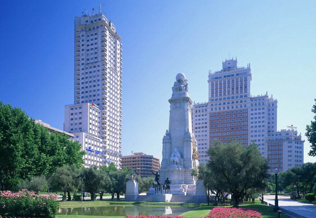 市內(nèi)現(xiàn)代化的高樓大廈與風(fēng)格迥異的古建筑摩肩并立、相映生輝。樹林、草坪和各種造型別致的噴泉和雕有古代小亞細(xì)亞人尊崇的自然女神尼貝萊塑像噴泉最吸人入勝。宏偉的阿爾卡拉門坐落在阿爾卡拉街頭的獨(dú)立廣場上,共有5道拱門,是馬德里著名的古建筑之一。財(cái)政部、教育部和西班牙的主要銀行坐落在阿爾卡拉大街兩側(cè),建于1752年的王家美術(shù)學(xué)院收藏著牟利羅和戈雅等西班牙美術(shù)大師的名作。巍峨的塞萬提斯紀(jì)念碑聳立在西班牙廣場上,碑前有堂吉訶德和桑科•潘扎的塑像,巨大的碑身倒映在前面的水池之中,碑兩側(cè)是蔥郁的樹木;有“馬德里塔”之稱的西班牙摩天大廈位于廣場一側(cè)。