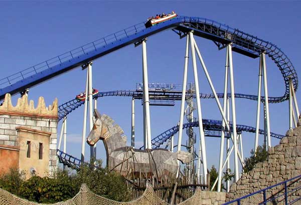 名為“京達(dá)卡”(Kingda Ka)的最新過(guò)山車是世界上最快的過(guò)山車,它的高度達(dá)到了139米。開始時(shí)水壓彈射器將游客乘坐的車速提高至每小時(shí)206公里,穿過(guò)270度的環(huán)形通道,讓人有強(qiáng)烈的失重感。這座過(guò)山車有一個(gè)雙軌道站臺(tái),可同時(shí)支持4駕過(guò)山車在2條軌道上收放游客,總功率可達(dá)到7400馬力,每小時(shí)可以接待多達(dá)1400名游客。“京達(dá)卡”是目前為止,世界上最高,同時(shí)也是最快的過(guò)山車。