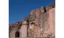 經石峪金剛經刻位于斗母宮東北經石峪,是中國現存規模最大的佛經摩崖刻石。 經文刻于面積2064平方米的緩坡石坪上,自東而西刻《金剛般若波羅密經》,采用后秦鳩摩羅什譯本,原本全1卷、32分目、5172字,經刻只刻到15分目“特經功德 兮”,計44行,每行125字或10字不等,凡2799字,字徑50厘米。經刻歷千余年風 雨剝蝕、山洪沖擊、游人踐踏、捶拓無度,已殘泐磨滅過半,現僅存經文41行、 1069字(包括可認讀的殘字和雙勾字)。