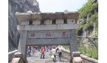 升仙坊位于山東省泰山中路緊十八盤的起始處,為兩柱單門式石坊,額題楷書“升仙坊”。此處山勢陡峻,懸崖峭壁,上臨岱頂天庭,咫尺仙境,似有飄然升仙的意境,故名“升仙坊”。游人至此小憩,每每浮想聯翩。回視山下,常有騰身云霄之感,舉首仰望,南天門近在眼前,奮力攀登,岱頂在望。 升仙坊位于南天門下。全石雙柱單門式,寬2.82米,通高4.5米,建于雙層方 石基上。基石長1.82米,寬0.64米,高0.5米。柱方形,下施滾墩石,獸頭石鼓狀。