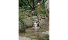 北九水以其麗山秀水繪就的優(yōu)美畫廊,馳名中外。嶗頂源泉之水從海拔1100多 米的高峰順勢而下,中途又匯集了眾多的溪流,凌空瀉入靛缸灣,又從靛缸灣溢出,沿著長長的深山峽谷,彎彎曲曲,時急時緩,時聚時散,奔騰而下。這樣一來,再配以兩側(cè)群峰聳峙,禽鳥啼鳴,奇光薈萃,綠樹成蔭,山與水相互纏繞,形成了一步一景、一灣一色的瑰麗畫廊風(fēng)光。