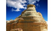 在若羌縣境北部的羅布泊地區,有著大片“雅丹”風蝕地帶,他大至分布在羅布泊的東西北三面,其中以羅布泊東面的雅丹地形最為典型。這片風蝕地東西寬約35公里,南北長約100公里,面積達3500平方公里,崗阜上,覆蓋著一層白色的鹽堿土層,有的是一層很厚的精鹽,另有一部分崗阜,本身就是白膏泥,他們在清晨陽光的映照下,反射出燦爛的銀光,因此,古書稱其為“白龍堆"。
